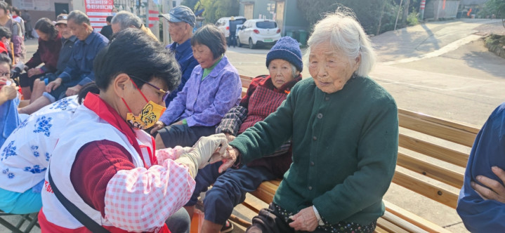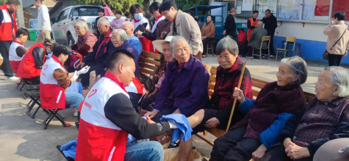 此外,现场志愿者还为老人们修剪发型、洗脚、剪指甲、按摩、普及应急常识,献上了精心准备的婺剧选段、红歌演唱、舞蹈表演……熟悉的旋律响起时,不少老人跟着轻声哼唱,还有村里老人现场参与节目表演,广场上笑声、掌声此起彼伏,暖意融融。